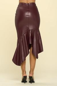 WINE DOWN SWING LEATHER SKIRT